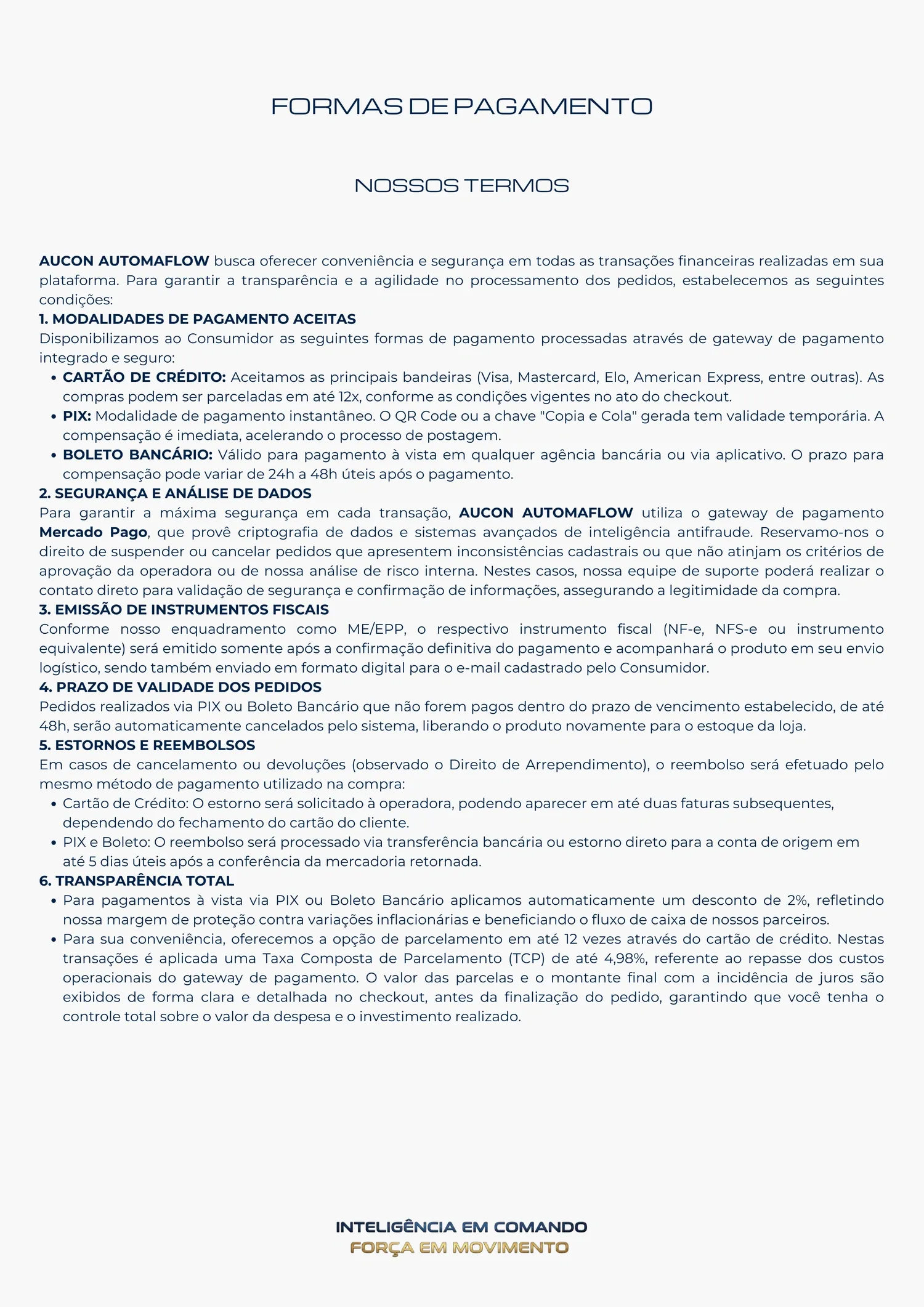 Formas de Pagamento
